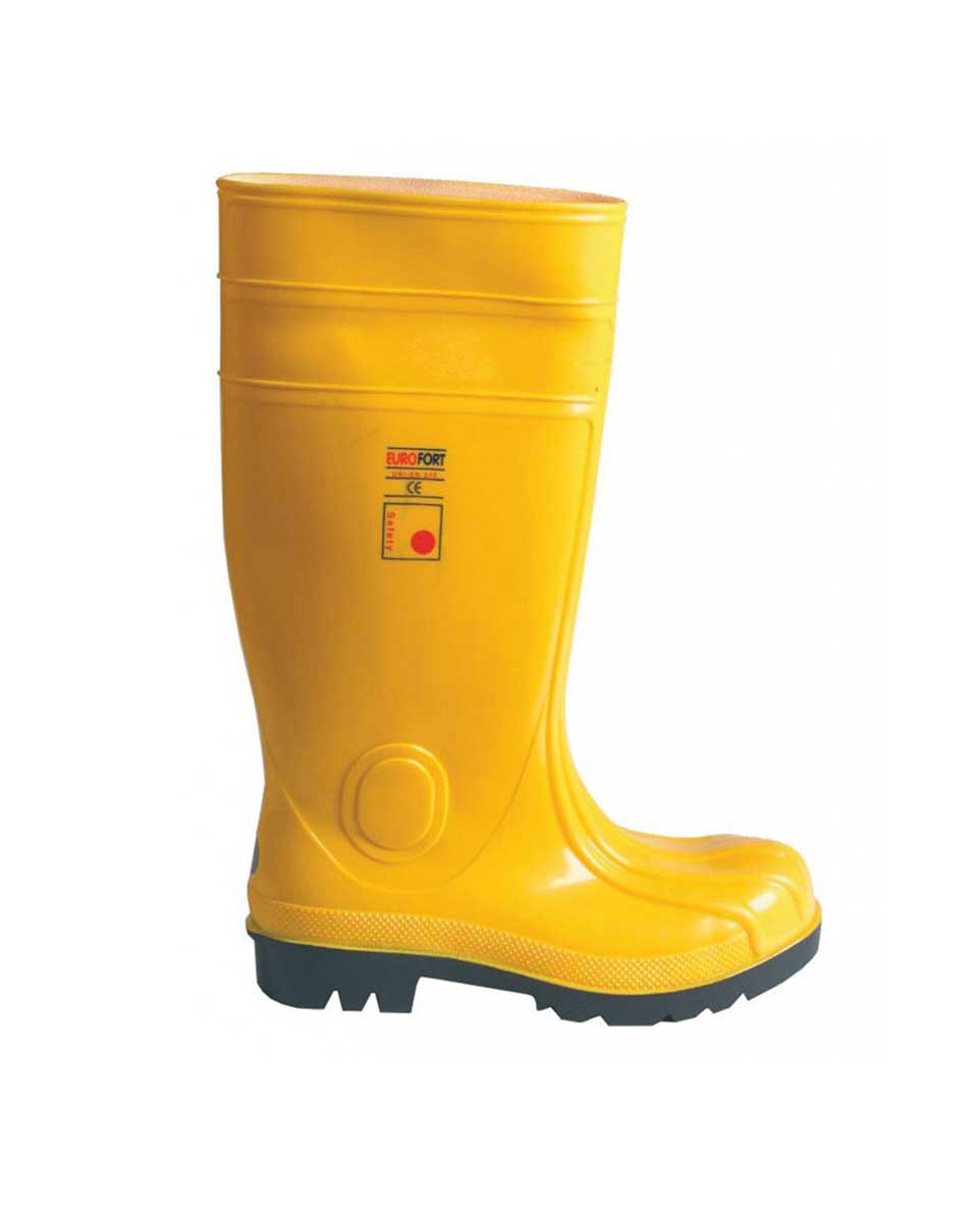 Γαλότσα Ασφαλείας S5 της Eurofort. Αδιάβροχη, προστατευτική, αντικραδασμική. Ιδανική για οικοδομή, υδραυλικά και εργασίες με χημικά. Πιστοποιημένη EN345.