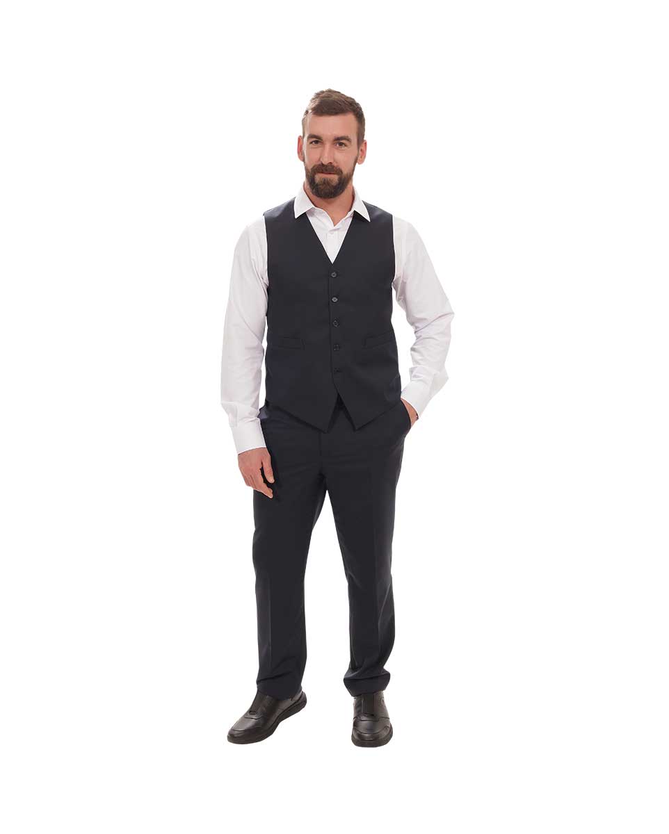 Γιλέκο ανδρικό James της Uniform. Επαγγελματικό γιλέκο σε κομψό πατρόν και φοδραρισμένο εσωτερικά. Με ύφασμα τεριλέν μπροστά και πίσω, είναι εύκολο στο πλύσιμο και το σιδέρωμα. Ένα προϊόν ελληνικής ραφής που προσφέρει κομψότητα και ποιότητα.
