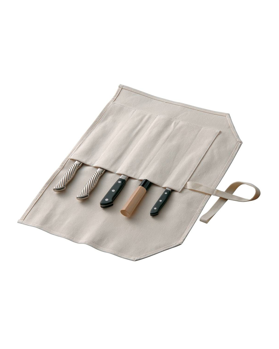 Θήκη Μαχαιριών 5 θέσεων – Tojiro. Βαμβακερός καμβάς που διπλώνει σε ρολό.