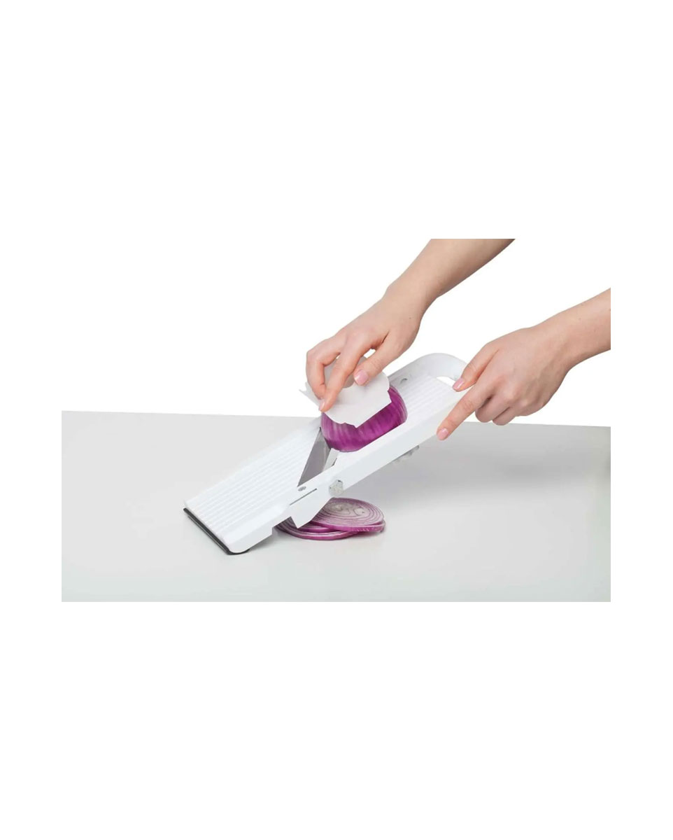 Το μαντολίνο έχει σχεδιαστεί για το κόψιμο φρούτων και λαχανικών σε ομοιόμορφο πάχος για σάντουιτς, σαλάτες, σούσι και εντυπωσιακά πιάτα. Το πάχος κοπής μπορεί να ρυθμιστεί ομαλά, ενώ το προστατευτικό δαχτύλων προστατεύει τα δάχτυλα από πιθανά κοψίματα.