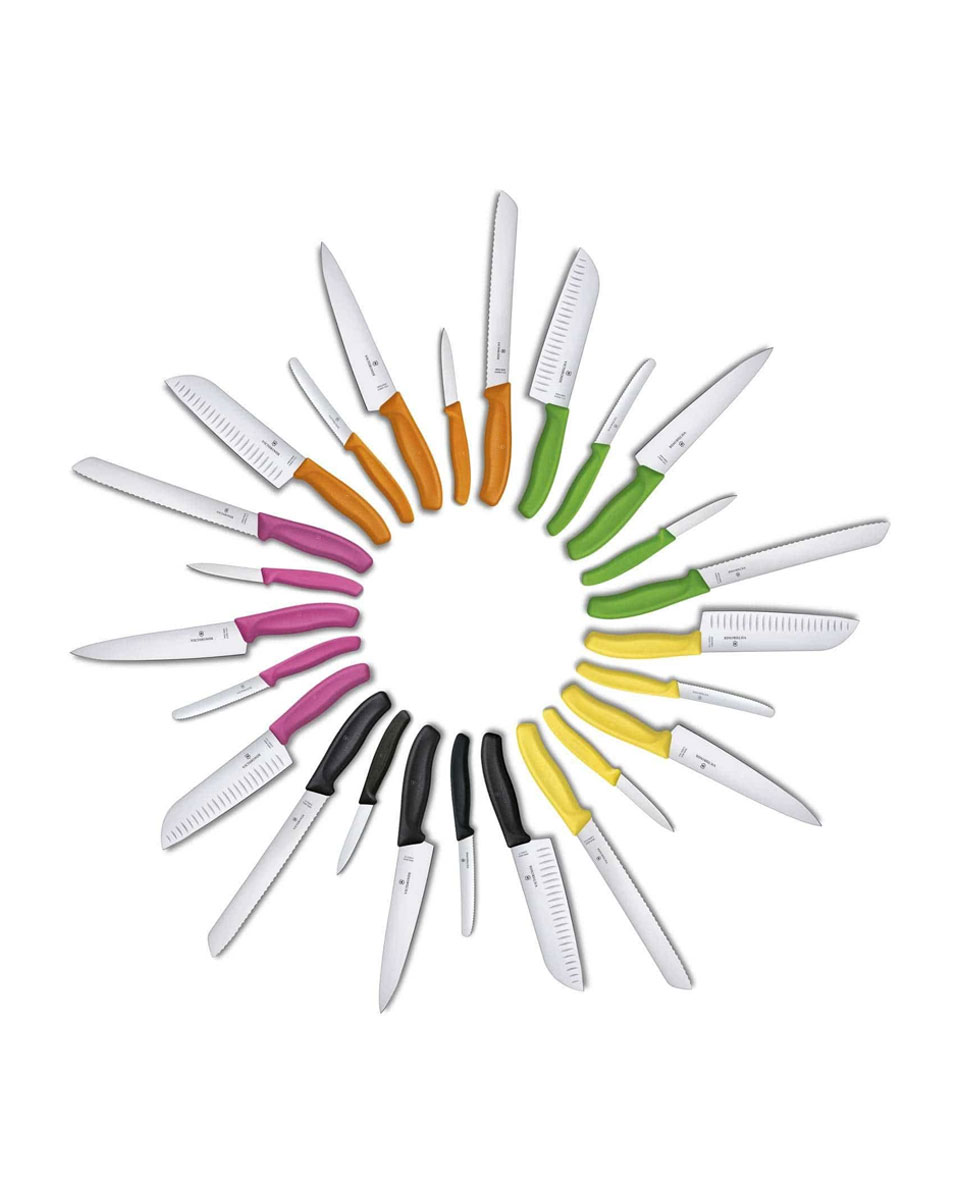 Αποκτήστε μυτερό το μαχαίρι κουζίνας 10 εκ. με κόκκινη λαβή Swiss Classic της Victorinox και απολαύστε την ανοξείδωτη λάμα, την εργονομική λαβή και την ελβετική κατασκευή του. Πλένεται εύκολα στο πλυντήριο πιάτων!