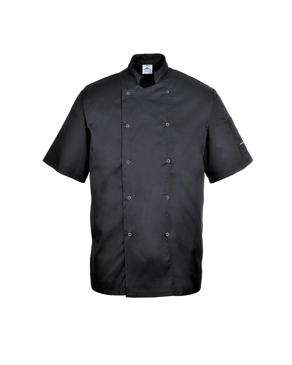 Ανθεκτικό σακάκι σεφ με κοντά μανίκια Cumbria C733 της Portwest. Ιδανικό για καθημερινή χρήση στην κουζίνα. Κλείνει με ανοξείδωτα τρουκ και διαθέτει μια εύχρηστη τσέπη στο μανίκι.