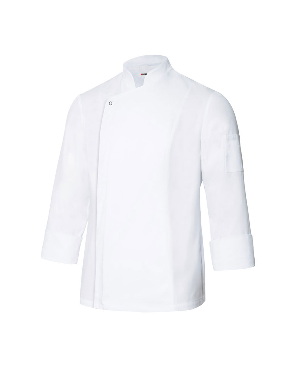 Ασύμμετρο μακρυμάνικο σακάκι σεφ με φερμουάρ.