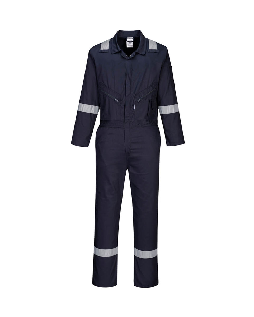 Ολόσωμη βαμβακερή φόρμα εργασίας με ανακλαστικές ταινίες για αυξημένη ορατότητα. Ιδανική για τεχνίτες, οικοδόμους και βιομηχανικά επαγγέλματα. Διαθέτει 8 τσέπες, φερμουάρ διπλής κατεύθυνσης, UPF 40+ και CE πιστοποίηση. Άνετη, ανθεκτική και υγροαπωθητική.